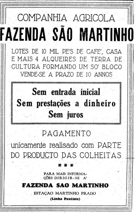 ACIMA: Loteamento de parte da fazenda em 1933 (O Estado de S. Paulo, 18/3/1933).