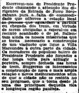 de S. Paulo, edição de 5/11/1918, quando a EFS pedia