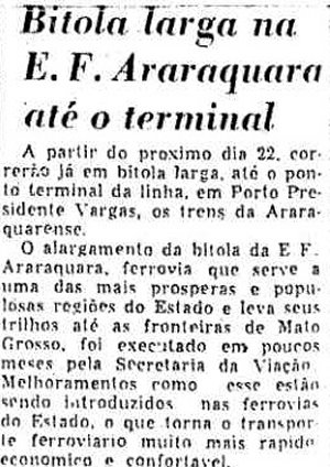 a Presidente Vargas em 1952, seu ponto final à beira do rio Paraná.