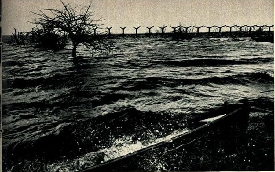de Santa Fé do Sul. Sobraram, debaixo d'água, somente os pilares da plataforma da estação.