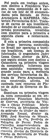 À ESQUERDA: Os primeiros trens correrão dia 22 de março (O Estado de S. Paulo, 19/03/1960). |