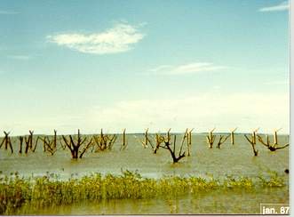 A plataforma, no mesmo dia de 1987, com árvores mortas