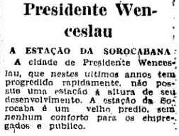 arrecada a estação de Presidente Wenceslau, cuja cidade, pelos algarismos