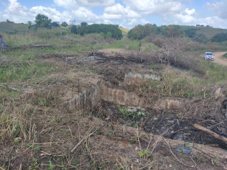 ACIMA: Ruínas da plataforma e das fundações do prédio da antiga estação em 2021 (Foto Rodrigo Henrique, 26/9/2021).