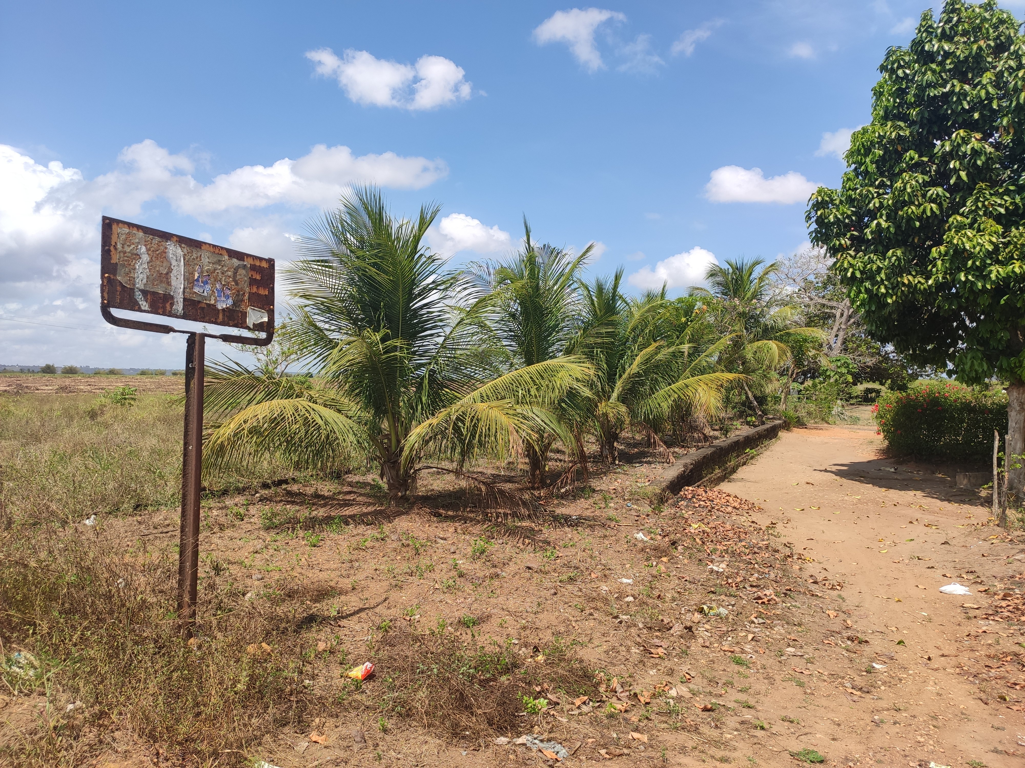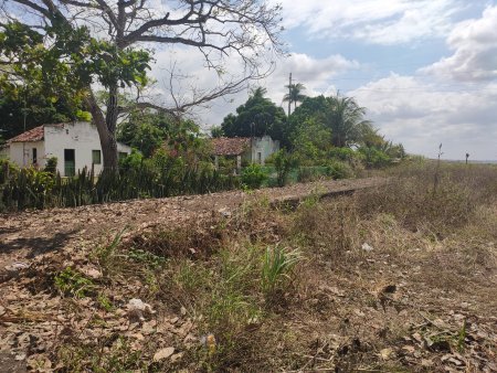 Dada toda essa dificuldade para alcançar a estação a partir da cidade, eu acredito que a mesma servisse mais aos moradores e trabalhadores dos engenhos, do que aos habitantes da cidade de Cruz do Espírito Santo, inclusive há uma estrada de rodagem que passa ao lado da estação (essa placa enferrujada indicava uma passagem de nível) e que levava até uma pequena vila mais à frente (Rodrigo Henrique, 21/10/2021)".
