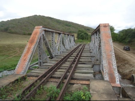 ACIMA: Ponte ferroviária próxima à estação de Ingá em 2021 (Foto Geraldp Langovsky).