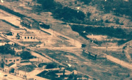 ACIMA: Vista aerea da estação de Soledade em 1968. A estação está localizada na imagem no canto superior esquerdo e o antigo armazém no canto inferior direito. Ao lado da estação estão as casas do chefe e agente da mesma (Cessão Jonatas Rodrigues).