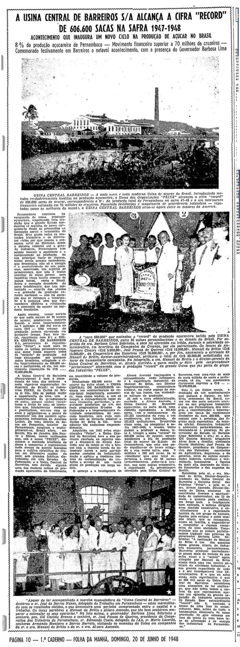 MAIS SOBRE A USINA EM 1948 (Folha da Manhã, 20/6/1948).