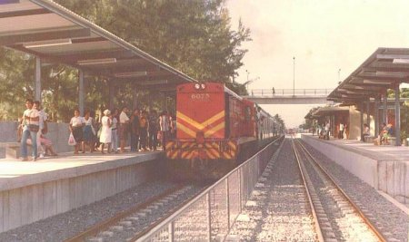 ACIMA: Estação de Boa Viagem, provavelmente também anos 1980. Esta estação foi a segunda (a terceira é a que hoje existe e da qual não disponho de fotografia , já de arquitetura mais moderna do que a antiga para a atender a demanda do serviço de trens de subúrbio que existiam na época. Hoje essa estação já não existe mais , tendo substituída por uma estação maior e mais moderna construída para atender a linha sul do metrô do Recife que substituíu as antigas locomotivas a diesel pelos TUEs, mais modernos e de maior capacidade. Não sei dizer se esta estação de Boa Viagem ficava no mesmo local da antiga estação, pois na realidade aquela região recebeu duas estações grandes de metrô , a estação Aeroporto e a estação Tancredo Neves, e entre estas duas estações ainda se é possível observar, pra quem tem olho bom, as ruínas da primeira estação de Boa Viagem.(Texto da foto - Rodrigo Henrique, em 22/4/2021. Foto do acervo da CBTU).