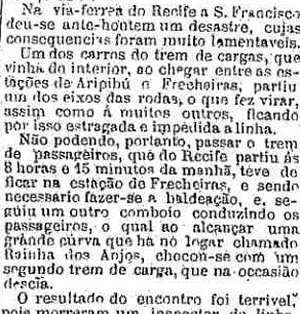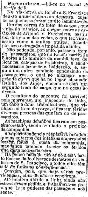 AO LADO: Acidente em Frecheiras -CLIQUE SOBRE O ARTIGO PARA VÊ-LO NA ÍNTEGRA (O Estado de S. Paulo, 19/2/1893) |