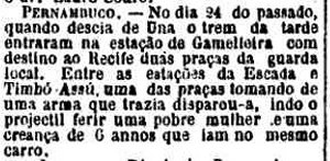 AO LADO: Praças (soldados) embarcam na estação da Gameleira e dão tiros durante a viagem (O Estado de S. Paulo, 4/2/1891) |