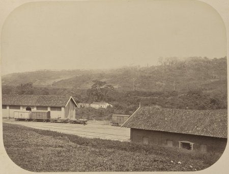 ACIMA: Estação de Una, em 1875-1876 (Foto Commissão Geologica do Imperio do Brasil).