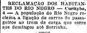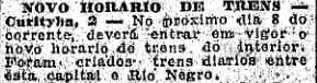 AO LADO: Trens diarios de Curitiba para Rio Negro (O Estado de S. Paulo, 4/5/1920). |