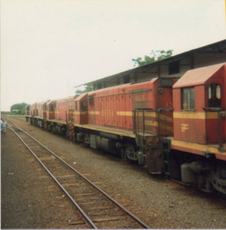 em 1991, com as locomotivas paradas ao longo do pátio do AGEF