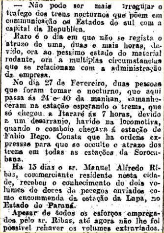 da Brazil Railway, era ruim, atrasava constantemente e extraviava