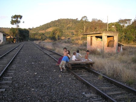 a alegria das crianças com seu trolinho. O trem? Esse passava