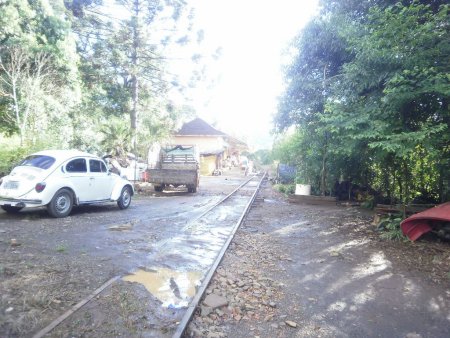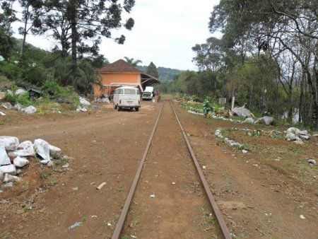 ali, sossegado, ainda tendo à sua frente trilhos cobertos de mato.