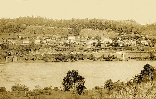 em 1930. Na parte baixa, a estação, casas da vila ferroviária,