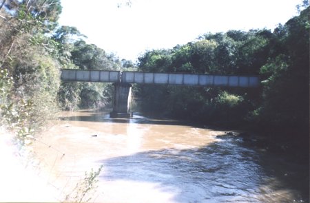 ponte ferroviária sobre o rio Cachoeira, aberta em 1902 pela E. F. São
