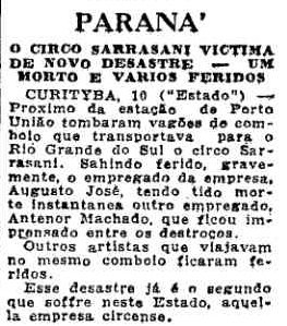 AO LADO: O acidente foi no Paraná; a estação citada no artigo deveria ter sido a de União da Vitoria (O Estado de S. Paulo, 11/1/1935). |