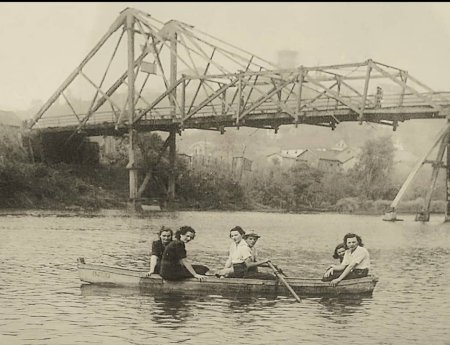 ACIMA: A ponte rodoviária sobre o rio do Peixe, próxima à estação, provavelmente nos anos 1950 (Autor desconhecido).