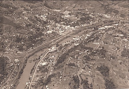 ACIMA: A cidade de Videira, em 1982. Ao centro,