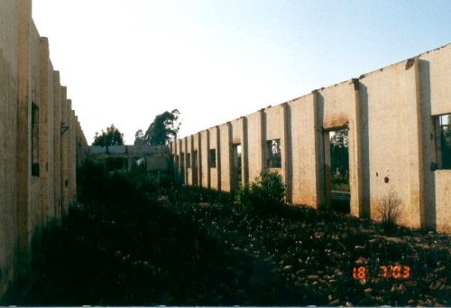 Só sobraram as paredes laterais em pé. Em seu pátio, um típico vagão