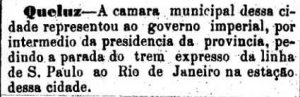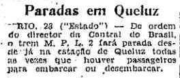 AO LADO: Queluz pede paradas dos trens expressos da E. F. D. Pedro II (O Estado de S. Paulo,