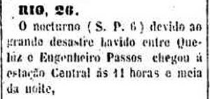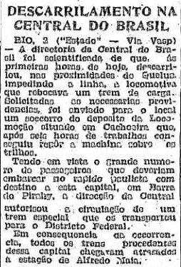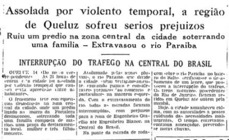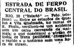 AO LADO: Desastre entre Queluz e Engenheiro Passos - CLIQUE SOBRE O TEXTO PARA VER A SEGUNDA PARTE DA NOTICIA (O Estado de S. Paulo,