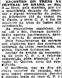 AO LADO: Choque de trens em Queluz (O Estado de S. Paulo,
