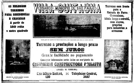 Em 1923, anúncio do loteamento no bairro de Quitaúna