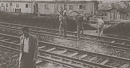 ACIMA: Trem da Sorocabana chega à estação de Quitauna em 1950. Foto Bar do Simões).