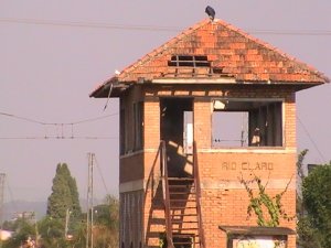 ![]() A antiga cabina de controle, sem função, está semi-destruída e abandonada. |
