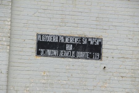 ACIMA: Placa na sede da Algodoeira Palmeirense S. A. (APSA) em Rancharia (Google Maps, outubro de 2023).