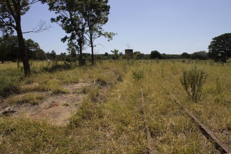ACIMA: Como todo o trecho entre Rubião Junior e Presidente Epitacio, em 2020 a linha está sem tráfego e abandonada em Rancharia (Foto João Francisco Cunha em 10/3/2020).