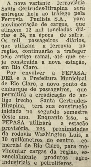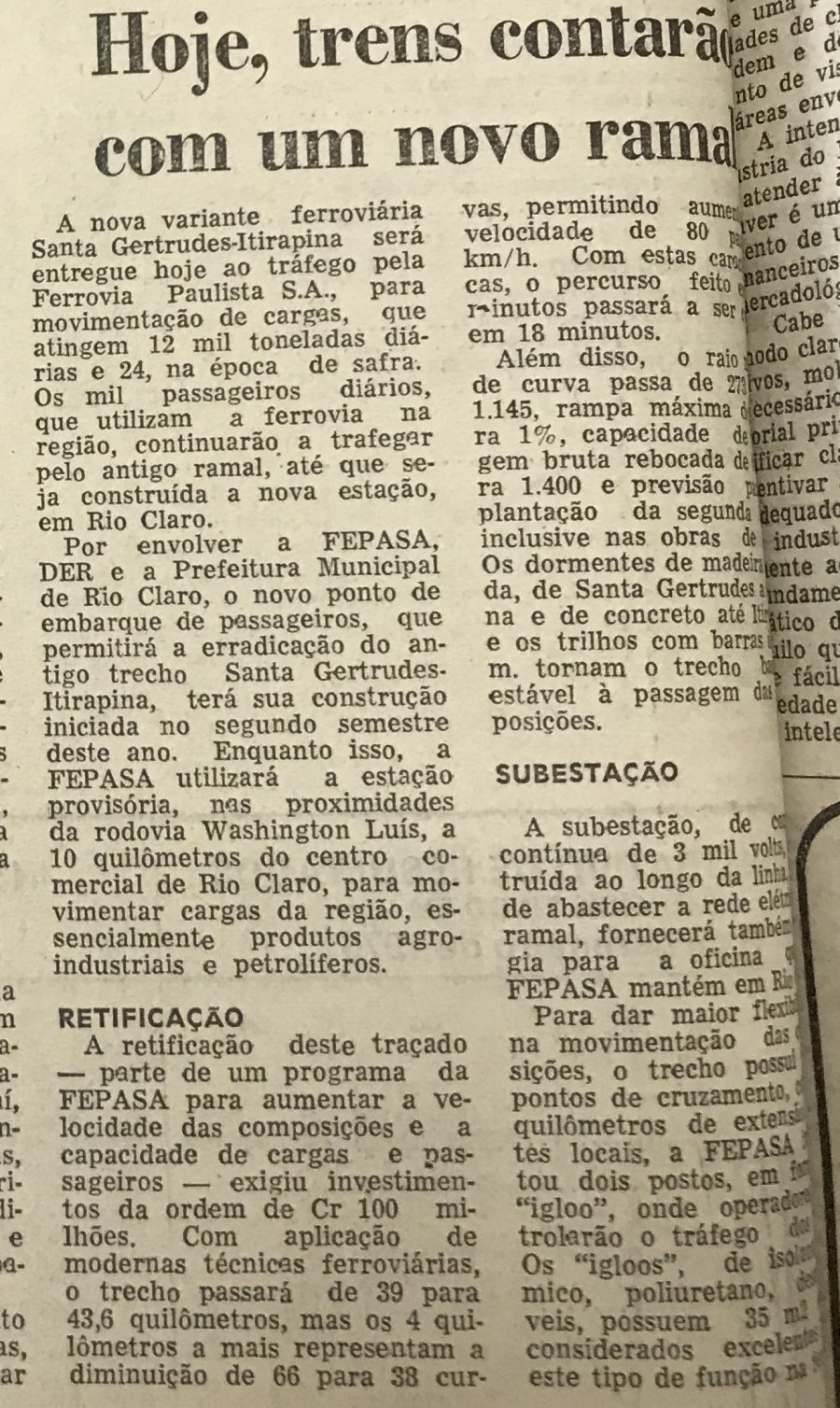 entre Santa Gertrudes e Itirapina somente foi construída anos anos