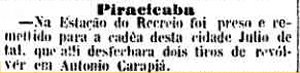 AO LADO: Preso na estação de Recreio (O Estado de S. Paulo, 31/03/1900). |