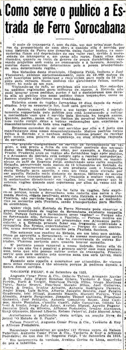 alterado para Regente Feijó quando a Cia. Industrial Mercantil