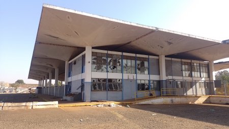 ACIMA: A estação de Ribeirão Preto-nova em agosto de 2023, já fechada e sem uso. Reparar nos vidros quebrados, provavelmente vandalismo (Foto Silvio Rizzo em