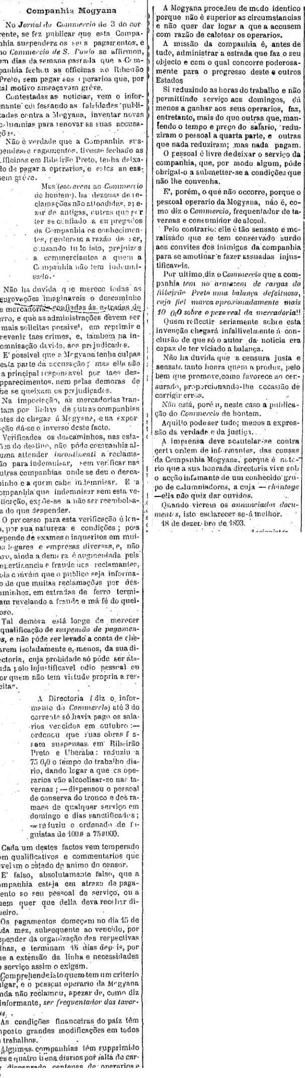 fato de que a Mogiana havia nesse dia recomeçado o embarque e desembarque