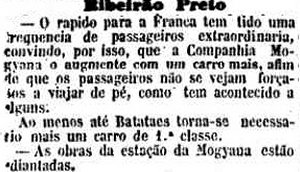 de Ribeirão Preto foi inaugurada na linha da Mogiana, com alguma