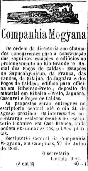 AO LADO: Edital para coostrução de diversas estações na linha do Rio Grande e no ramal de Caldas, inclusive esta (A Provincia de S. Paulo,