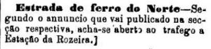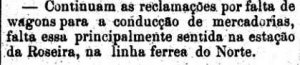 AO LADO: Faltavam vagões em Roseira (A Provincia de S. Paulo, 03/03/1878). |