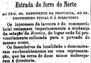 ao governo provincial pedindo uma nova estação em Roseira: