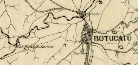 ACIMA: Mapa com a posição da estação de Runião Junior em 1949, a sudoesrw de Botucatu (IHG, 1949). |