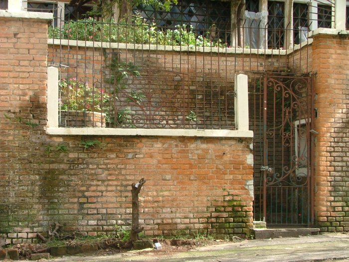 Muro, portão e grade em frente a residência