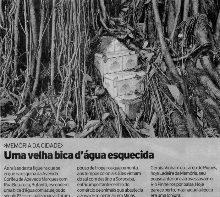 Bica d'água Avenida Corifeu de Azevedo Marques Foto: Niels Andreas - O Estado de S. Paulo - 27/6/2006 Data de inclusão: 27/6/2010 A legenda publicada no jornal diz tudo.
