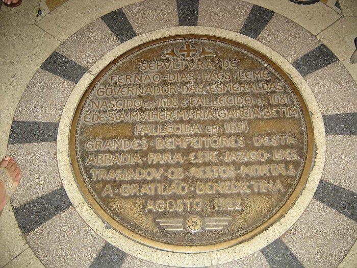 Mosteiro de São Bento Largo de São Bento Foto: Adriano Martins, 2010 Data de inclusão: 27/6/2010 Sepultura de Fernão Dias Pes Leme no interior do Mosteiro de São Bento.