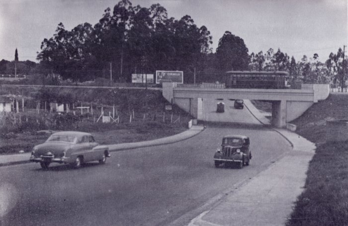 pontilhão da avenida Ibirapuera, onde somente os bondes cruzavam. Foi