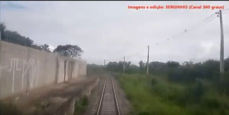 ACIMA: A parada de Caixa dágua ficava possivelmente onde está esta plataforma murada, vista por quem está no trem no sentido Natal (You Tube - canal 360 graus, 2021).
